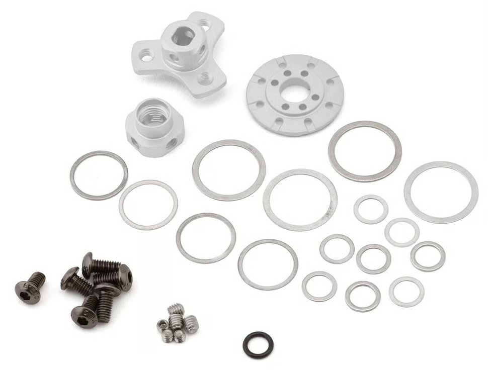 Only works with AE B74 Decoupled Slipper. Secure Spooler Spur Gear Mount to Kimbrough Spur Gear (KIM145, KIM146, etc.) with 3 M3x5mm or M3x6mm Button Head Screws. Use a small amount of thread lock to secure the screws. Slide setup onto the Slipper Shaft